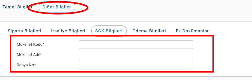 8) Ardından üst kısımdan Diğer Bilgiler sekmesi seçilir. Açılan sekmede Mükellef Koduna eczane sicili (18 ile başlayan), Mükellef Adına Eczane Adı ve Dosya No kısmına da Meduladan aldığımız döküm no yazılır. (Ancak bu faturanın reçete faturası olmadığı düşünüldüğünde, kurum tarafında bir sorun oluşmayacağı bilgisi sözlü olarak alınmıştır.)
